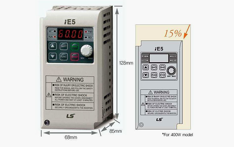 Zasilany 1-fazowo przemiennik częstotliwości LG/LS serii iE5 to idealne rozwiązanie dla małych maszyn gdzie bardzo istotną rolę odgrywają wymiary i funkcjonalność.