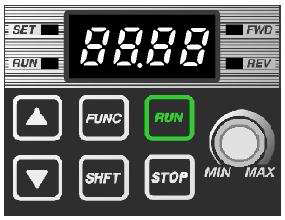 | Przycisk | RUN | Służy do uruchamiania falownika |