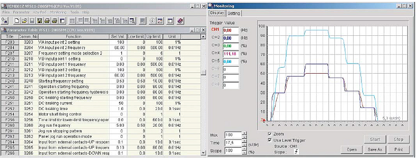 Do obsługi wszystkich serii przemienników TOSHIBA oferowanych na polskim rynku dostępne jest bezpłatne oprogramowanie pracujące w systemie Microsoft Windows®. Posiada ono wiele funkcji użytkowych,ułatwiających obsługę i eksploatację przemienników, np. odczytywanie nastaw z falownika, archiwizowanie nastaw w postaci pliku na dysku twardym, wgrywanie nastaw z pliku do przemiennika, ręczne wprowadzanie nastaw z komputera, odczytywanie stanów awaryjnych, monitorowanie pracy falownika w czasie rzeczywistym i wiele innych. Do obsługi przemienników wszystkich serii używane jest to samo oprogramowanie (dzięki unifikacji przemienników TOSHIBY), co znacznie ułatwia i skraca czas potrzebny na opanowanie jego obsługi.